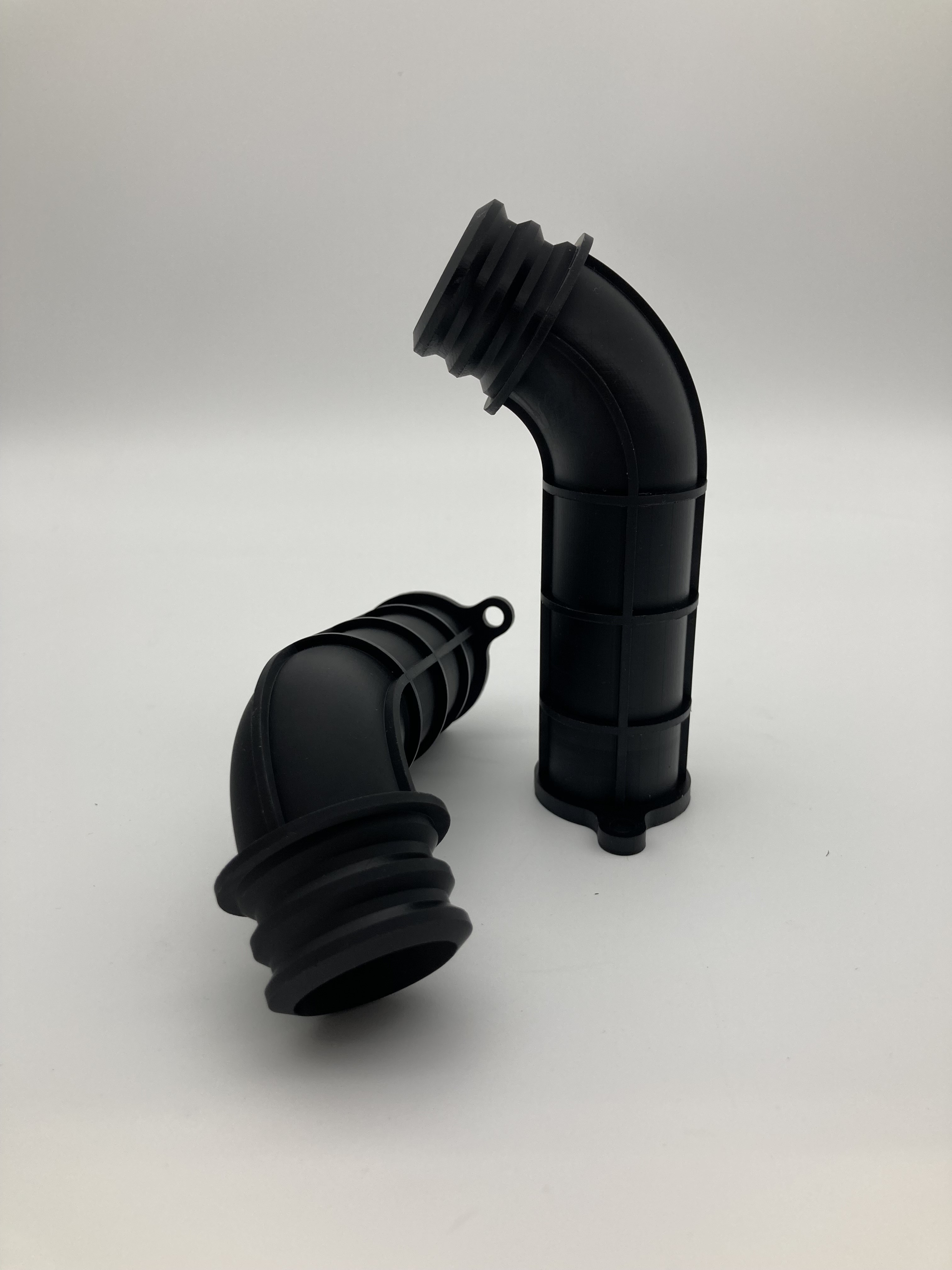 Dieser Krümmer dient z.B. der Verbindung von Schläuchen mit anderen Aggregaten. Er wurde mit dem Material Cubic Ink Tough 2100 VP hergestellt.