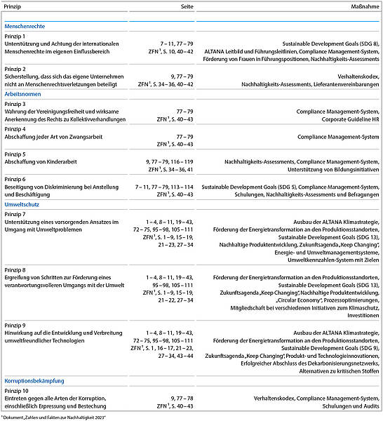 Unternehmensbericht 2023: Brief des Vorstands | Über diesen Bericht | Management von Nachhaltigkeit | Organe und Management der Gesellschaft | Bericht des Aufsichtsrats | Jetzt - für die Zukunft | Konzernlagebericht | Produkte | Sicherheit und Gesundheit | Umwelt | Personal | Gesellschaftliches Engagement | Konzernabschluss (Kurzfassung) | Mehrjahresübersicht | Fortschrittsmitteilungen zu Global Compact | ALTANA weltweit | Anteilsbesitzliste | Übersicht | Kontakt