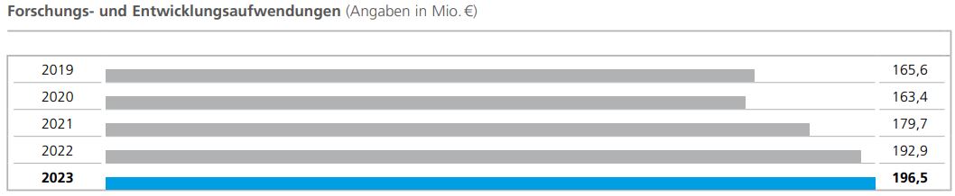 Grundlage für unsere Innovationskraft ist eine offene und dynamische Unternehmenskultur, die weltweit 1.265 Mitarbeiterinnen und Mitarbeitern in unseren Forschungs- und Entwicklungszentren Freiraum für kreatives und unternehmerisches Handeln gibt. Die Ausstattung in unseren Entwicklungszentren ermöglicht unseren Beschäftigten, ihre Ideen in marktreife Lösungen umzusetzen. Unsere Aufwendungen für Forschung und Entwicklung sind im Vergleich zum Vorjahr (192,9 Mio. €) um 3,6 Mio. € auf 196,5 Mio. € gestiegen. Der Anstieg des Umsatzanteils der Forschungs- und Entwicklungsaufwendungen auf 7,2 % (Vorjahr: 6,4 %) ist im Wesentlichen auf den nachfragebedingten Rückgang des Umsatzes zurückzuführen. Generell stehen unsere Aufwendungen in Verbindung mit der Erreichung wichtiger Meilensteine, der Umsetzung individueller Kundenwünsche in künftige, innovative Produkte und der langfristigen Ausrichtung unserer Innovationsaktivitäten.