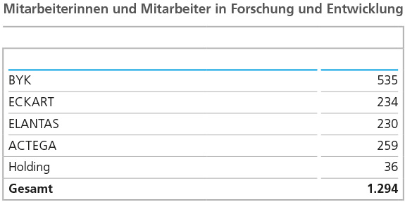 Ein großes Potenzial besteht darüber hinaus in der geschäftsbereichsübergreifenden Kombination unserer Kompetenzen, um auf diesem Weg schneller und effizienter innovative Lösungen im Markt zu etablieren. Unseren Teams in Forschung und Entwicklung stehen dafür in den chemischen Laboren neueste Analytikmethoden sowie anwendungstechnische Prüflabore zur Verfügung. Zahlreiche Auszeichnungen durch unsere Kunden unterstreichen unseren Erfolg als innovativer Lösungsanbieter.